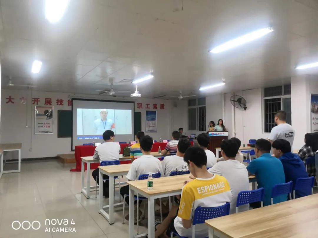 郴州技師學院實習帶隊老師陳穩生、廖宇、周宇,企業代表人事部唐俊峰、肖功桂及100余名實習生參與了本次表彰。